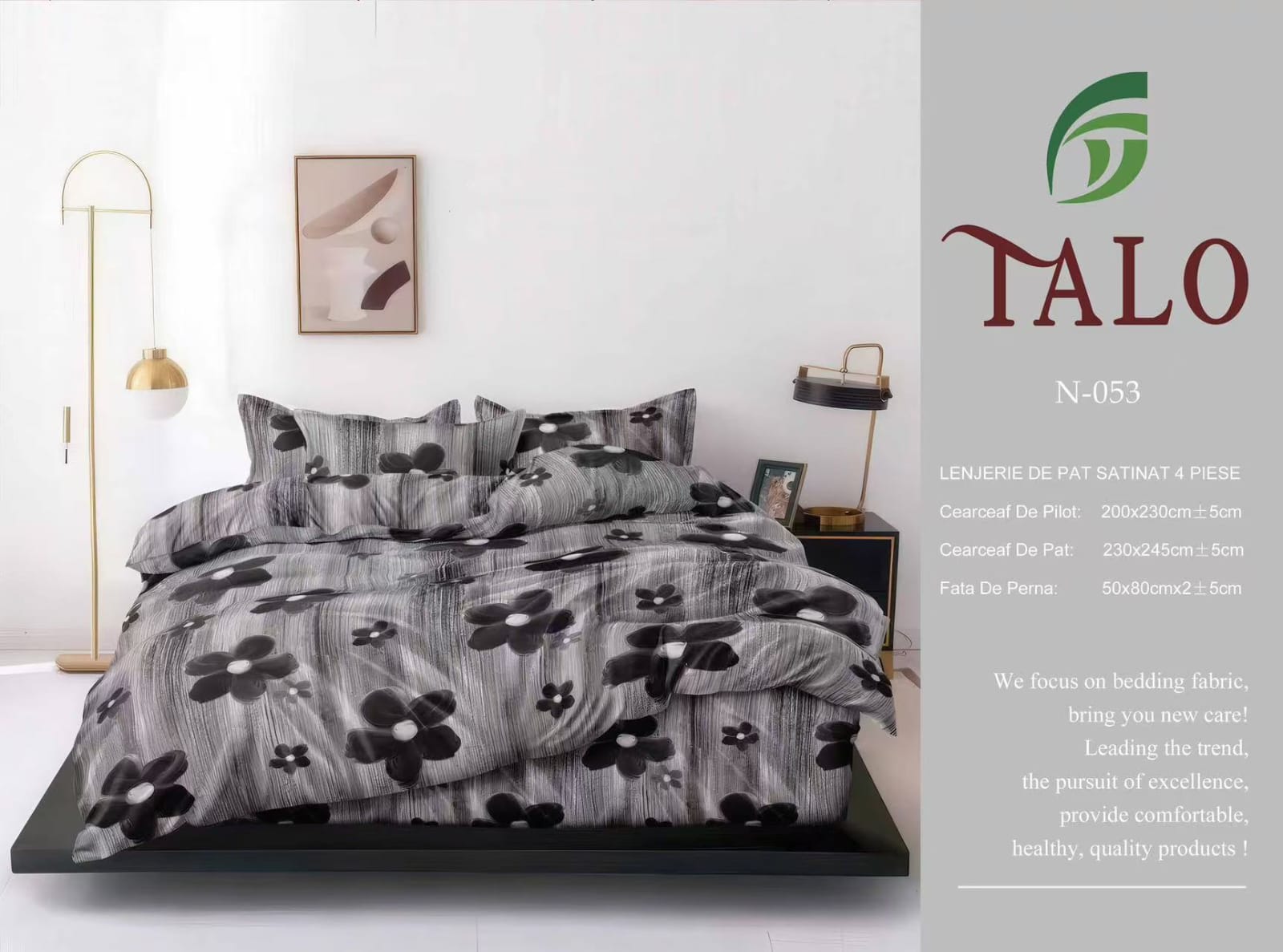 Modernă și versatilă, această lenjerie cu imprimeu abstract floral în nuanțe de alb și negru se potrivește perfect într-un decor minimalist și elegant.