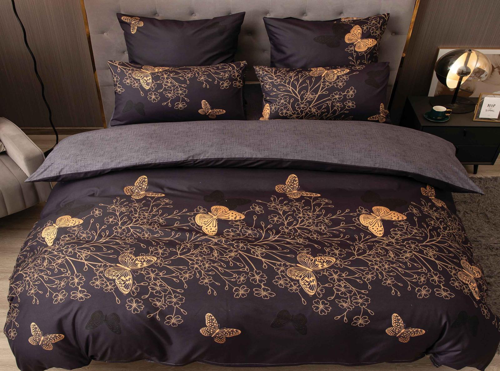Lenjerie de pat neagră cu fluturi aurii – 4 piese